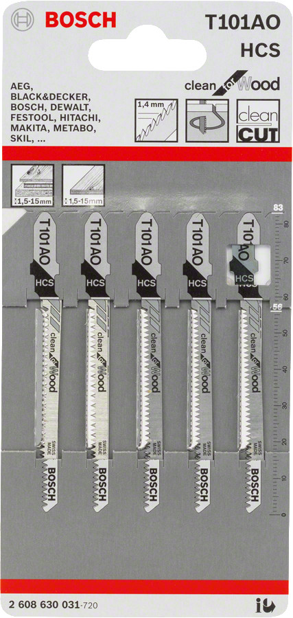 5 figūrzāģa asmeņi T 101 AO, Figūrzāģiem FIGŪRZĀĢA ASMENS T 101 AO CLEAN FOR WOOD, 2608630031, BOSCH