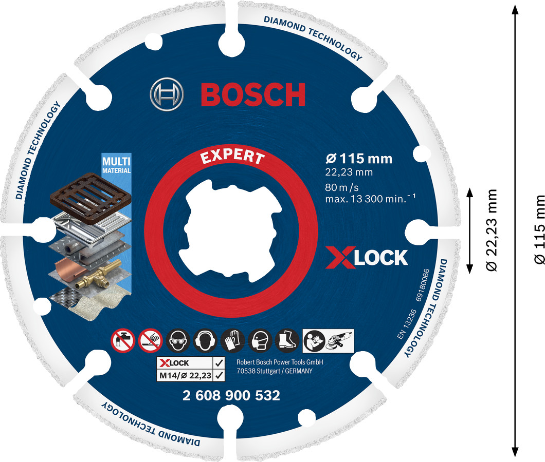 X-LOCK Dimanta disks Metalālam 115mm, Mazām leņķa slīpmašīnām EXPERT DIAMOND METAL WHEEL GRIEZĒJDISKS, 2608900532, BOSCH
