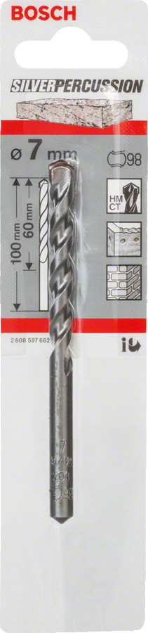 Urbis betonam, 7x100mm Silver Percussion, Urbjmašīnām/skrūvgriežiem, triecienurbjmašīnām/triecienskrūvgriežiem CYL-3 URBIS, 2608597662, BOSCH