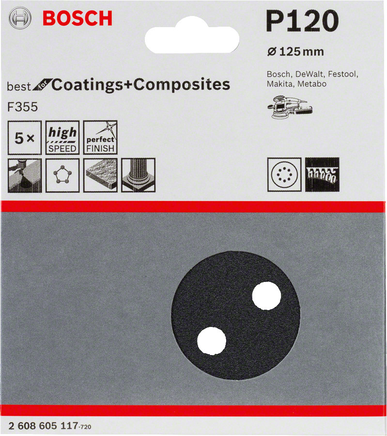 Slīppapīrs,akmenim,PEXGEX D=125mm,K120,5 gab., Ekscentra slīpmašīnām PRO F355 SLĪPDISKS, 2608605117, BOSCH