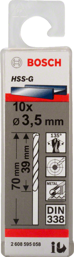 Metāla urbju komplekts PRO METAL HSS-G, 3.5 mm, 10 gab., 2608595058, BOSCH