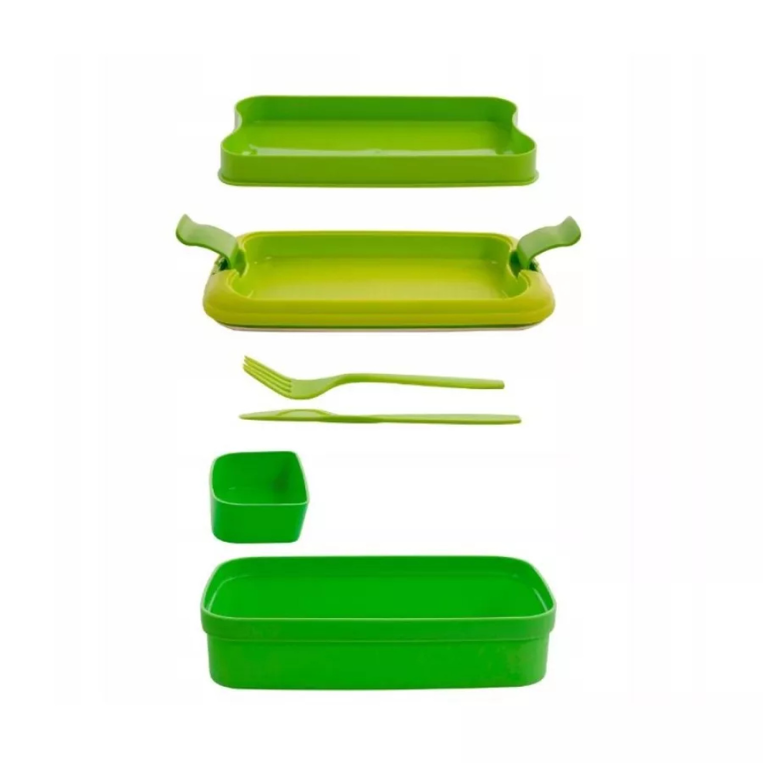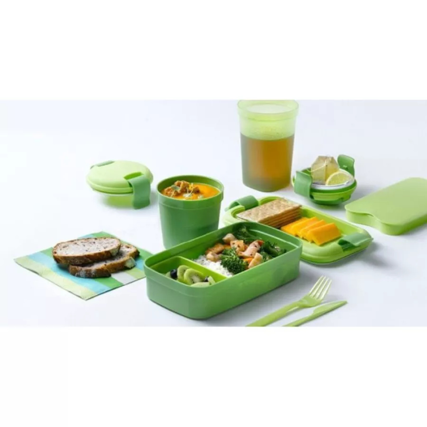 Пищевой контейнер прямоугольный со столовыми приборами 1,4л Lunch&Go зеленый