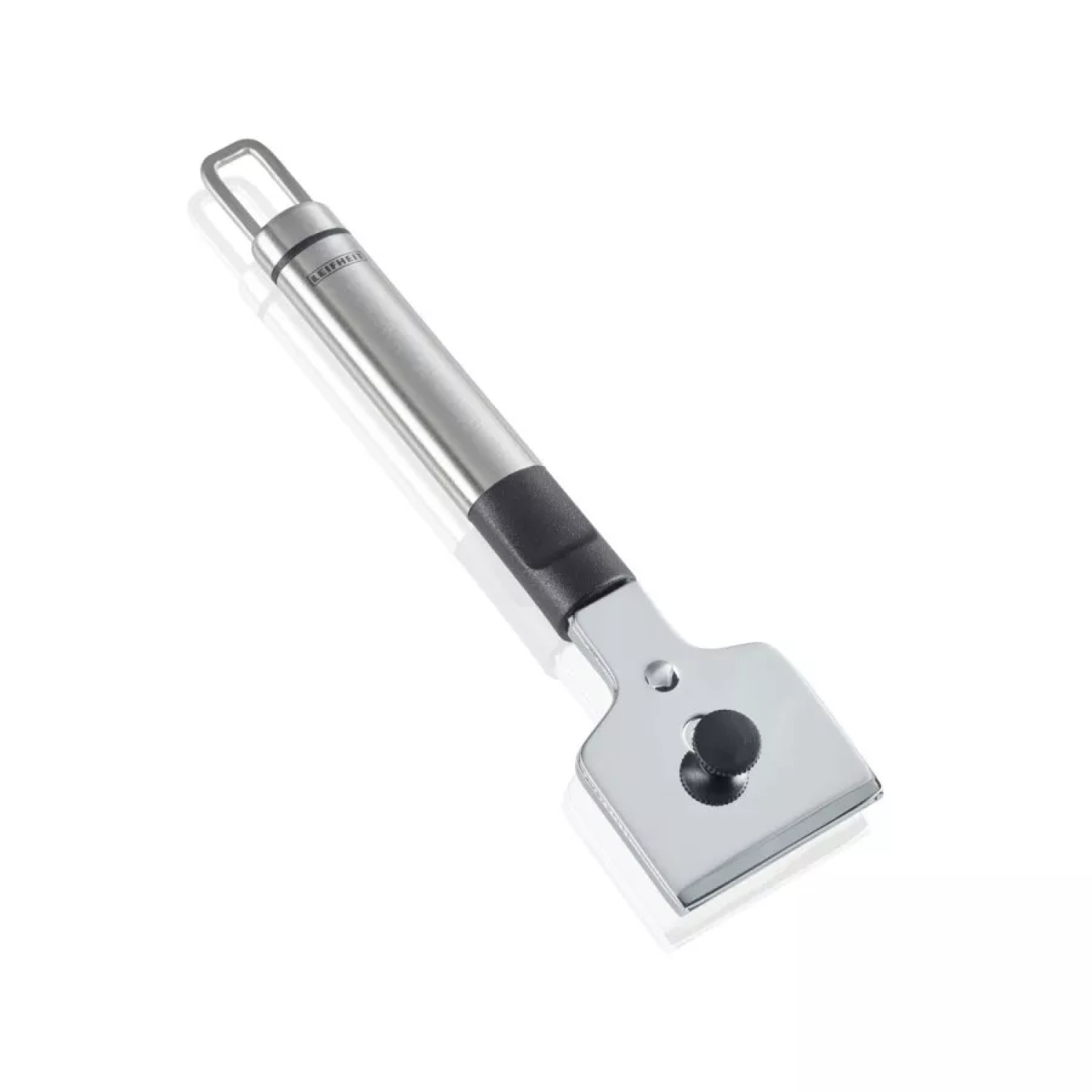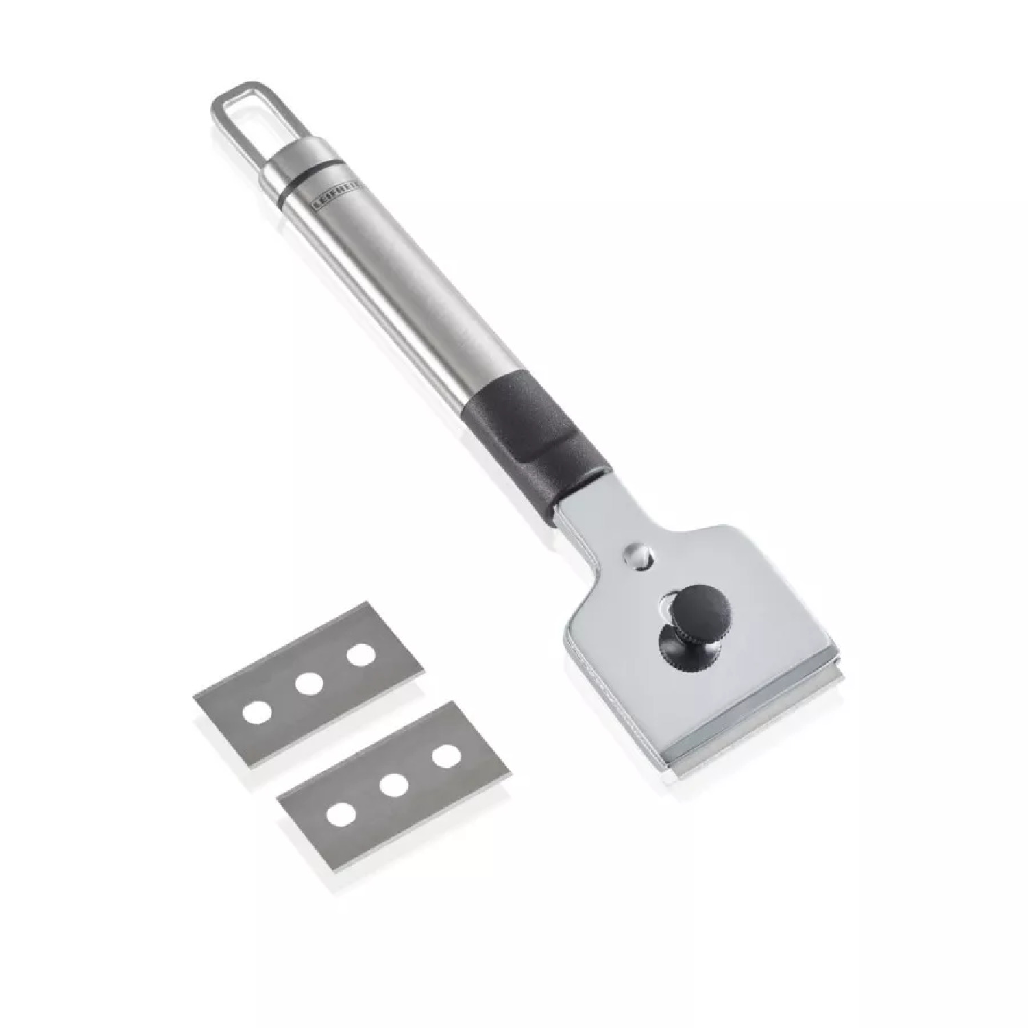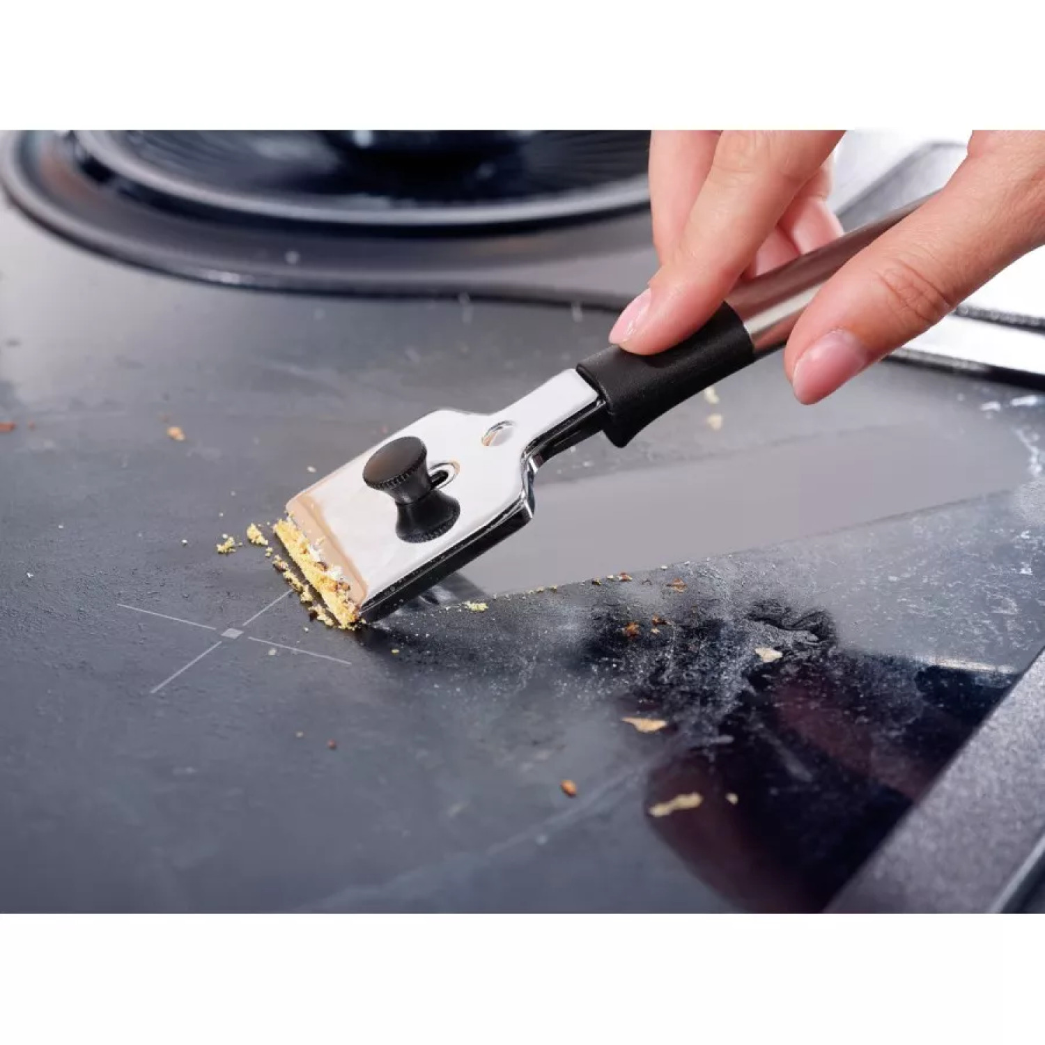 Скребок для варочной панели Leifheit имеет три лезвия, которые хранятся в наконечнике скребка, а также защитный кожух лезвия для предотвращения травм и царапин на предметах!