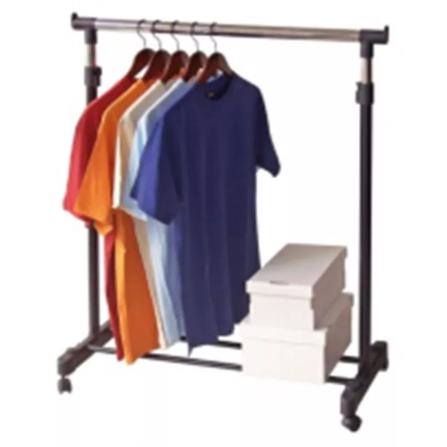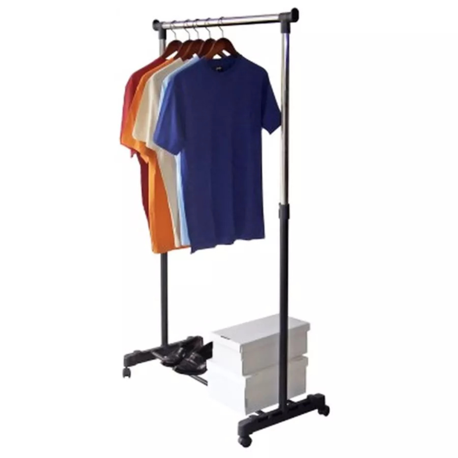 Стенд Deluxe Black от компании ORDINETT удобен для организации одежды. Его можно размещать в больших шкафах, в комнатах или в швейно-выкройных мастерских. Высота подставки регулируется, что делает его еще более универсальным. Легкий и удобный, он также оснащен 4 колесами для легкого перемещения. Для сборки не требуются инструменты.