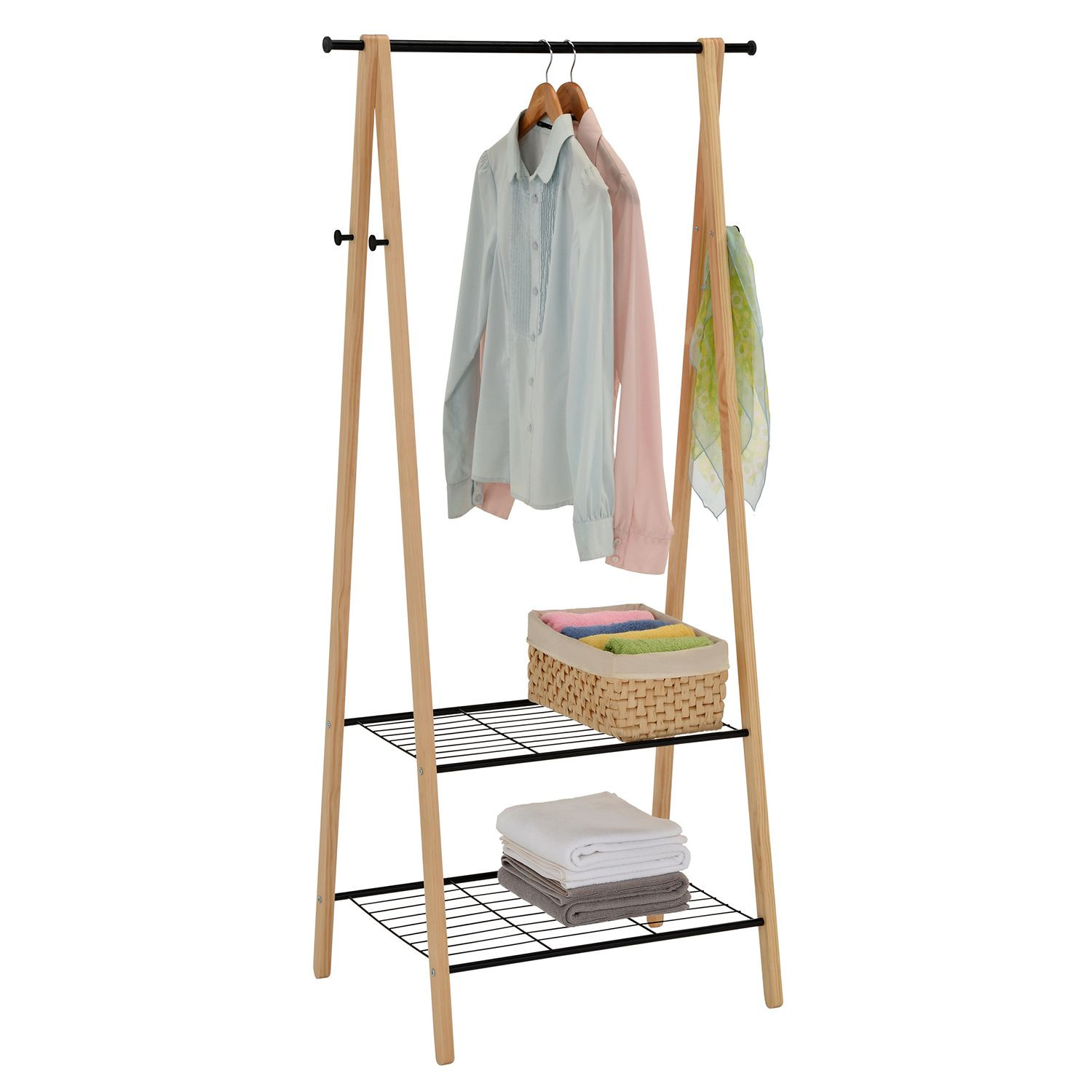 Drēbju pakaramais FOREST 2 plaukti un 4 āķi, 79x45xH155cm, materiāls: priede/tērauds, krāsa: dabīgs/melns 13961 Allit