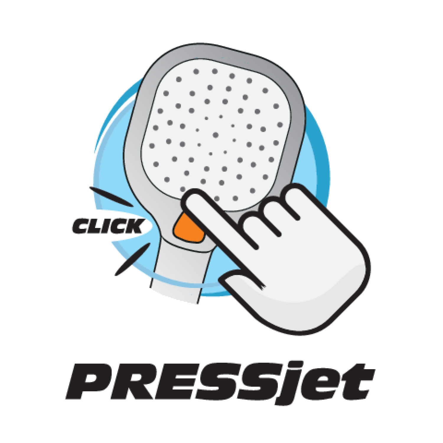 Переключатель функции PRESSjet, расположенный в эргономичной точке на ручке душа, позволяет быстро и эффективно менять тип распыления без необходимости использовать вторую руку.