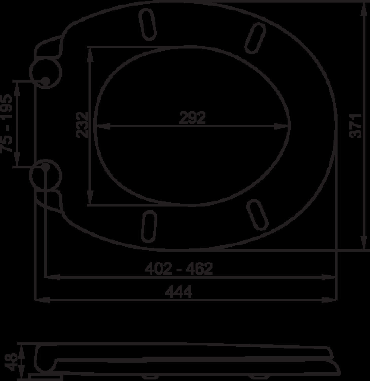 | Размер, мм | 402-462x371x48 |