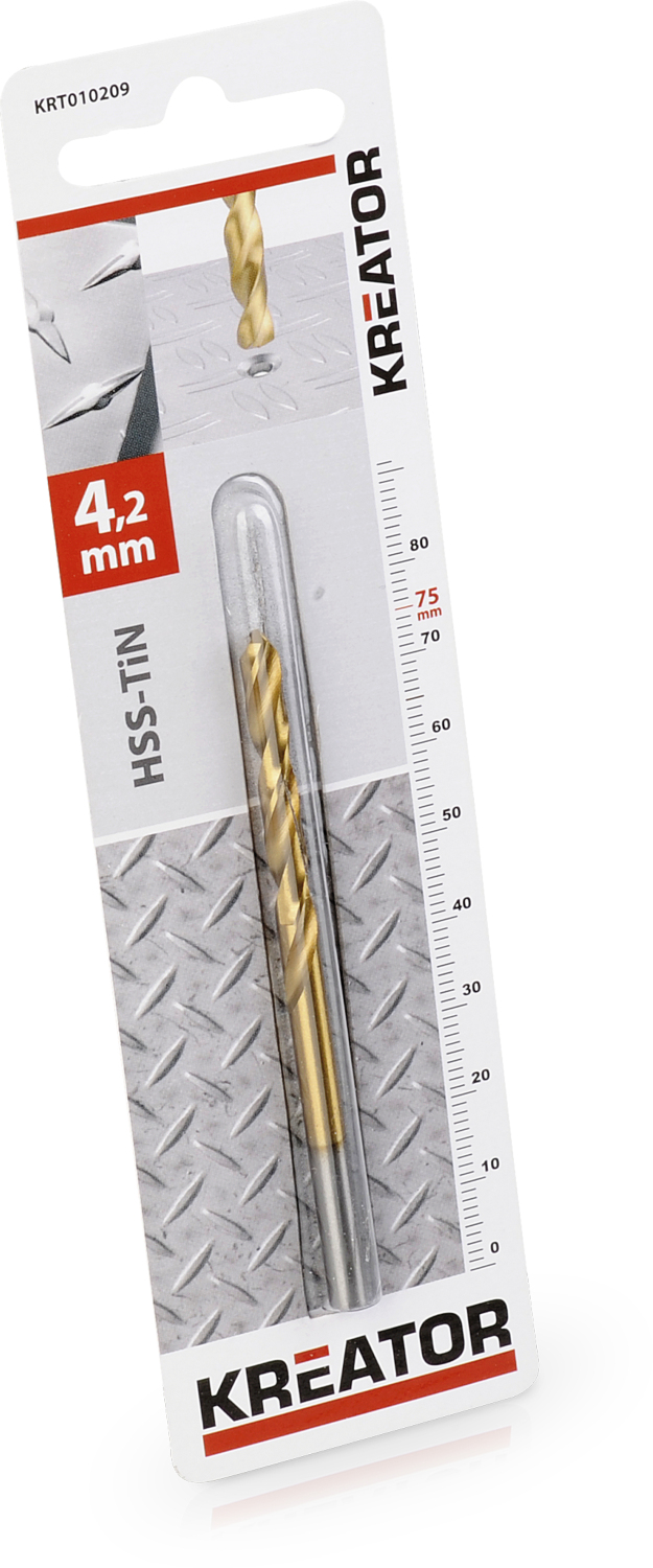 KRT010209 Металлические сверла HSS-TiN Ø 4,2x75mm, KREATOR, KRT010209, Диаметр хвостовика: 4.2 мм, Диаметр головки: 4.2 мм