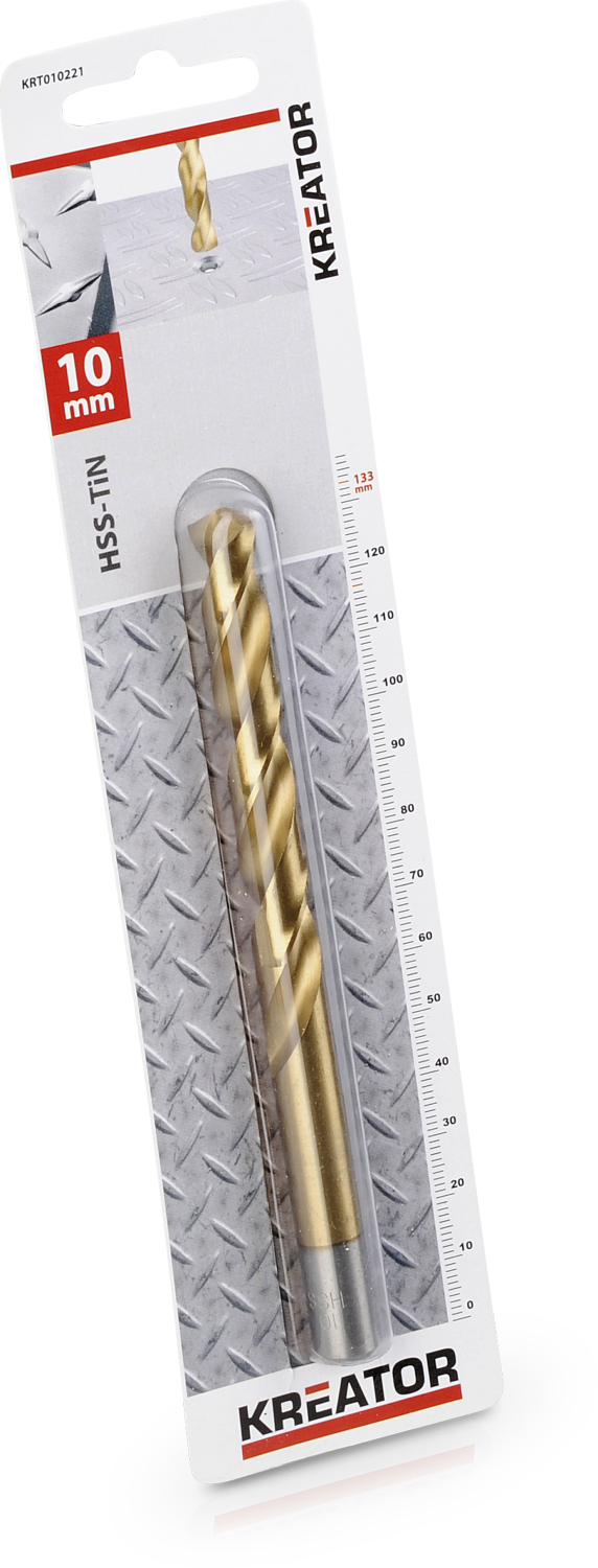 KRT010221 Металлические сверла HSS-TiN Ø 10x133mm, KREATOR, KRT010221, Диаметр хвостовика: 10 мм, Диаметр головки: 10 мм