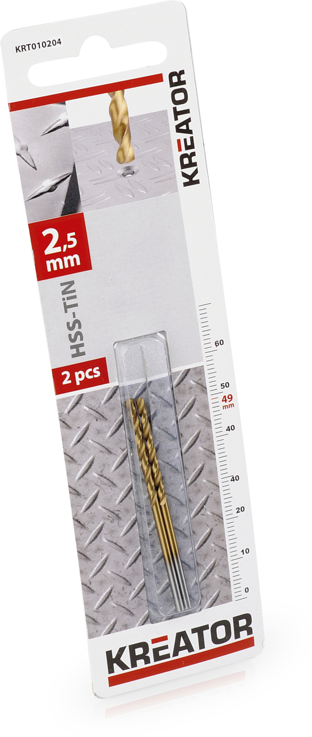 Эти два маленьких сверла HSS-TiN от бренда KREATOR идеально подходят для сверления в металле. Диаметр сверл составляет 2,5 мм, а длина - 57 мм. Покрытие из титановогo нитрида гарантирует срок службы до 3 раз дольше, чем у традиционных сверл HSS.
