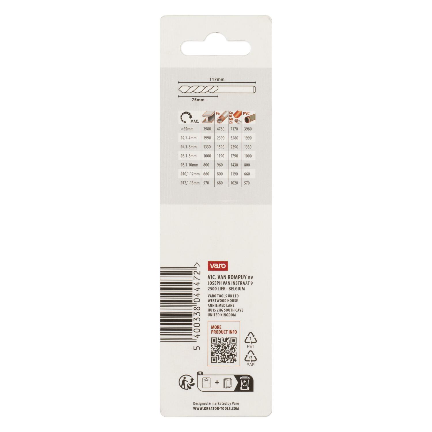 Металлическое сверло HSS-TiN KREATOR модели KRT010218 идеально подходит для сверления в металле. Оно имеет диаметр 8 мм и длину 117 мм. Покрытие из титаново-нитридного сплава обеспечивает срок службы до 3 раз дольше, чем у традиционных сверл HSS.