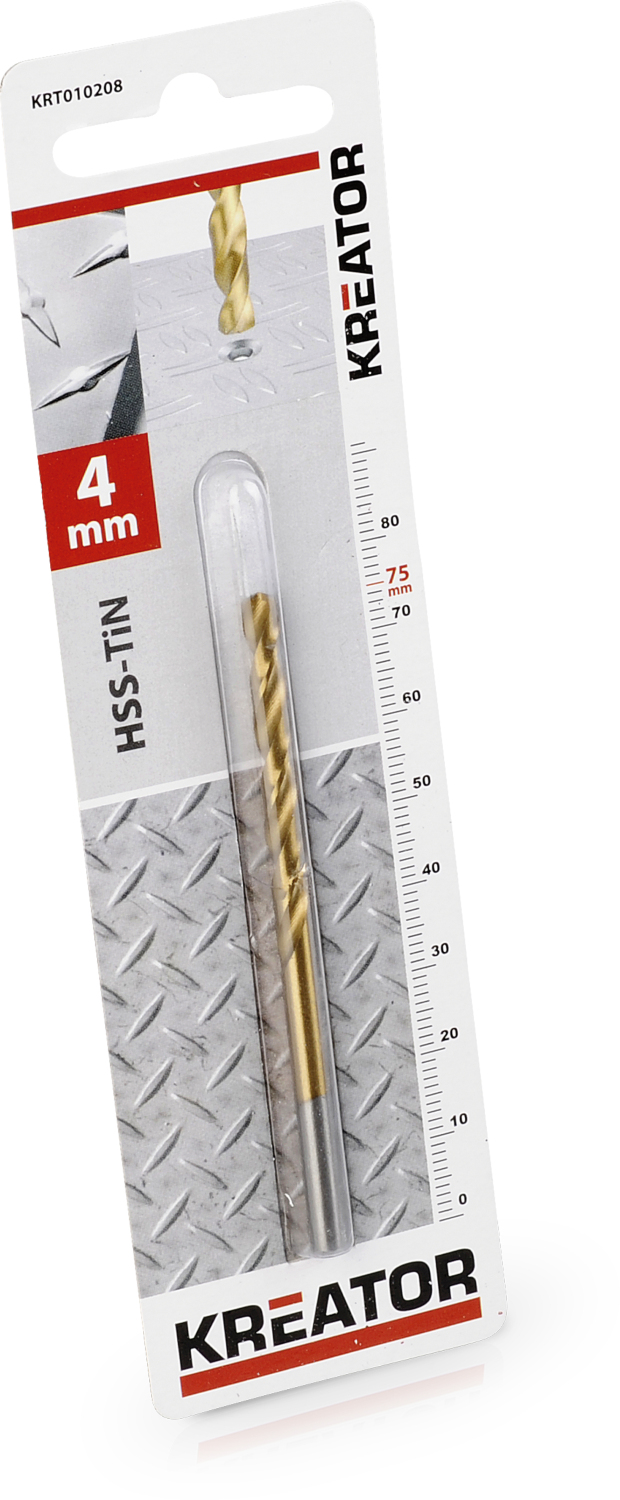 KRT010208 Металлические сверла HSS-TiN Ø 4x75mm, KREATOR, KRT010208, Диаметр головки: 4 мм