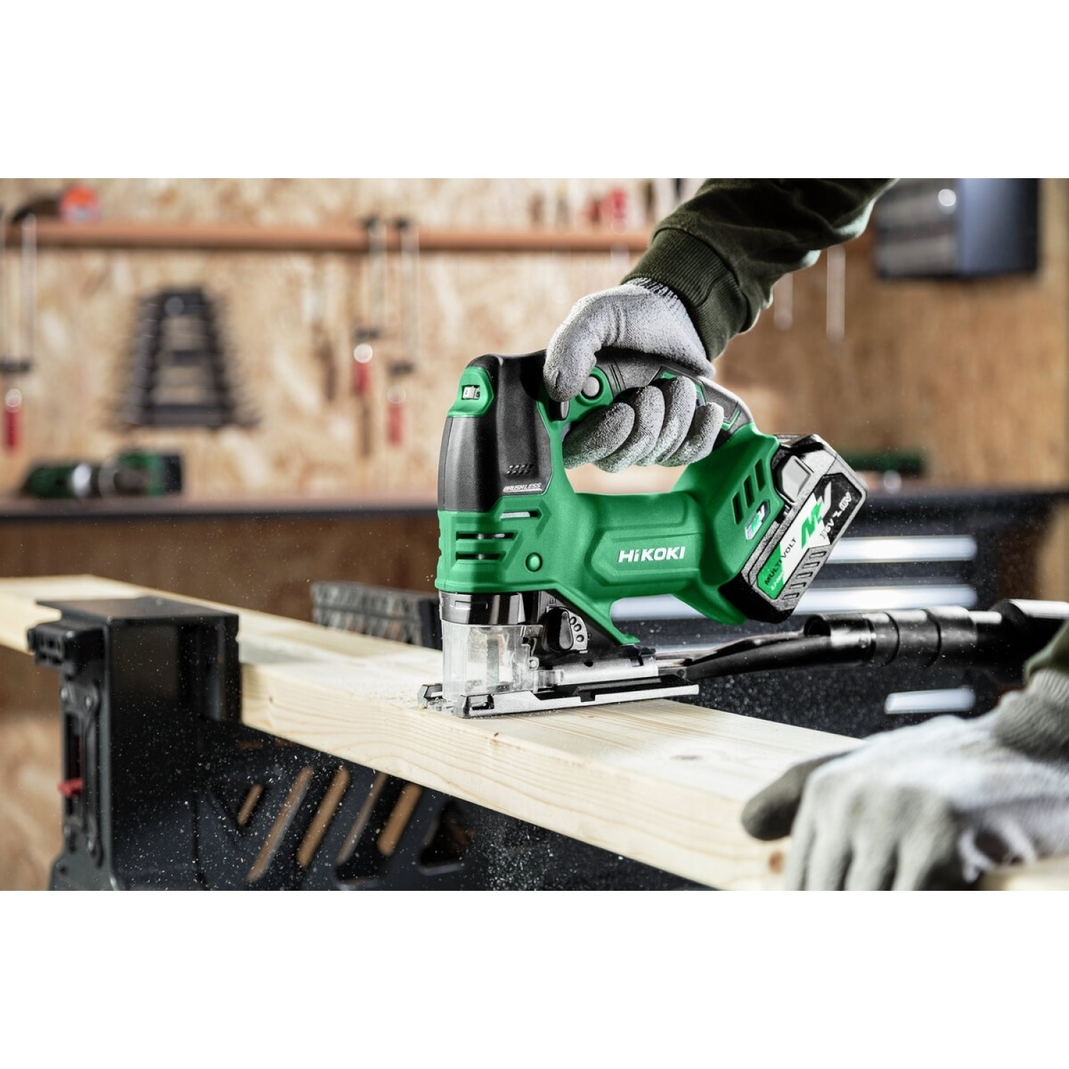 Bezvadu lāzergriezējs HIKOKI CJ36DAW2Z, 36 V, bezsuku motors, 3-ātrumu orbīta, ātra asmens maiņa, LED apgaismojums