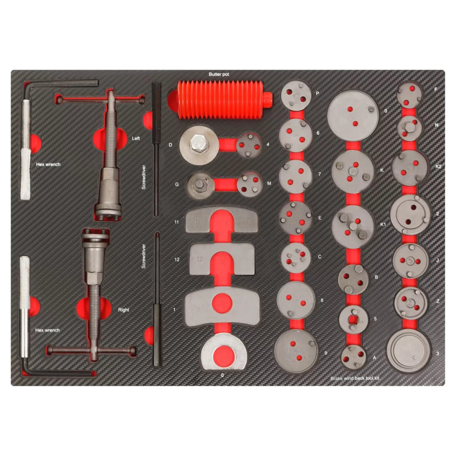 Набор для обслуживания тормозных суппортов EVERFORCE EF-21037 включает 35 инструментов, упакованных в удобный ложемент. Этот комплект идеально подходит для профессионального использования и поможет вам быстро и эффективно выполнять работы по обслуживанию автомобиля.