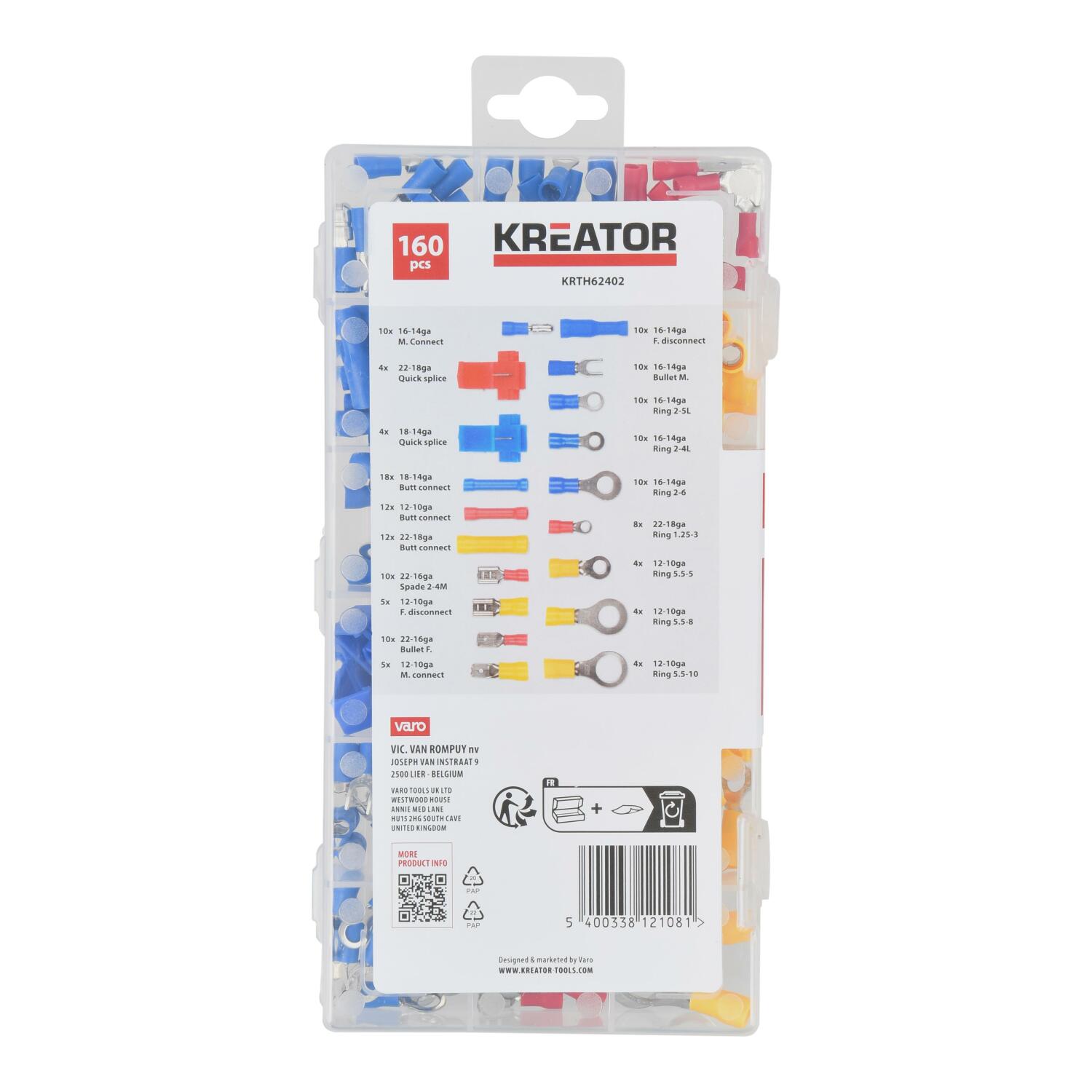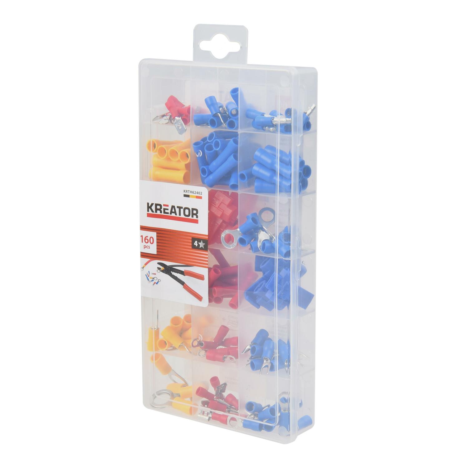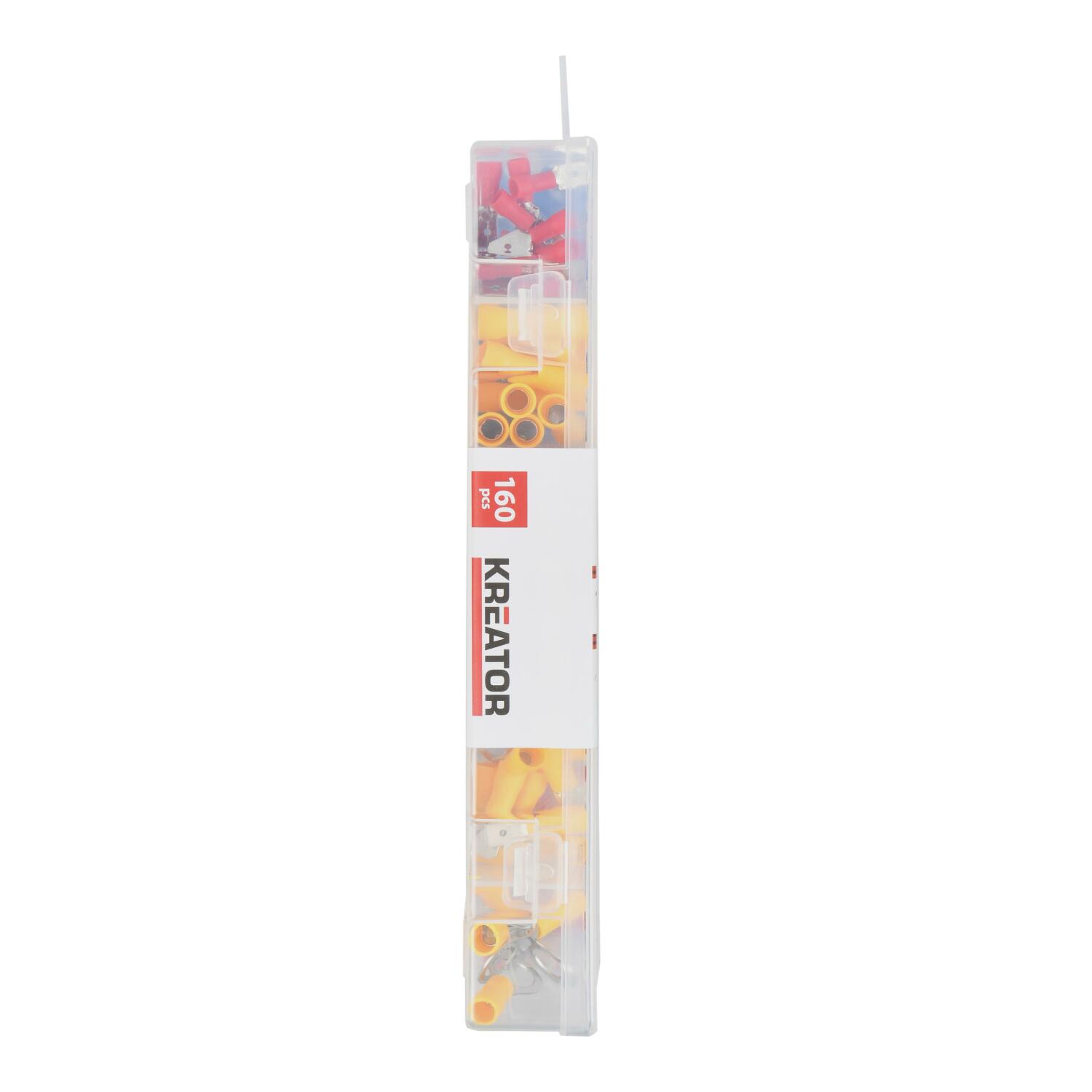 Набор обжимных соединителей 160 шт KREATOR KRTH62402 - это полный набор кабельных наконечников для работы с электрическими проводами. Он поставляется в аккуратной прозрачной упаковке, что позволяет быстро находить необходимые соединители.