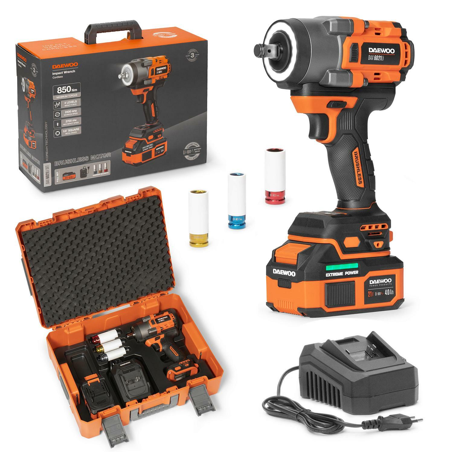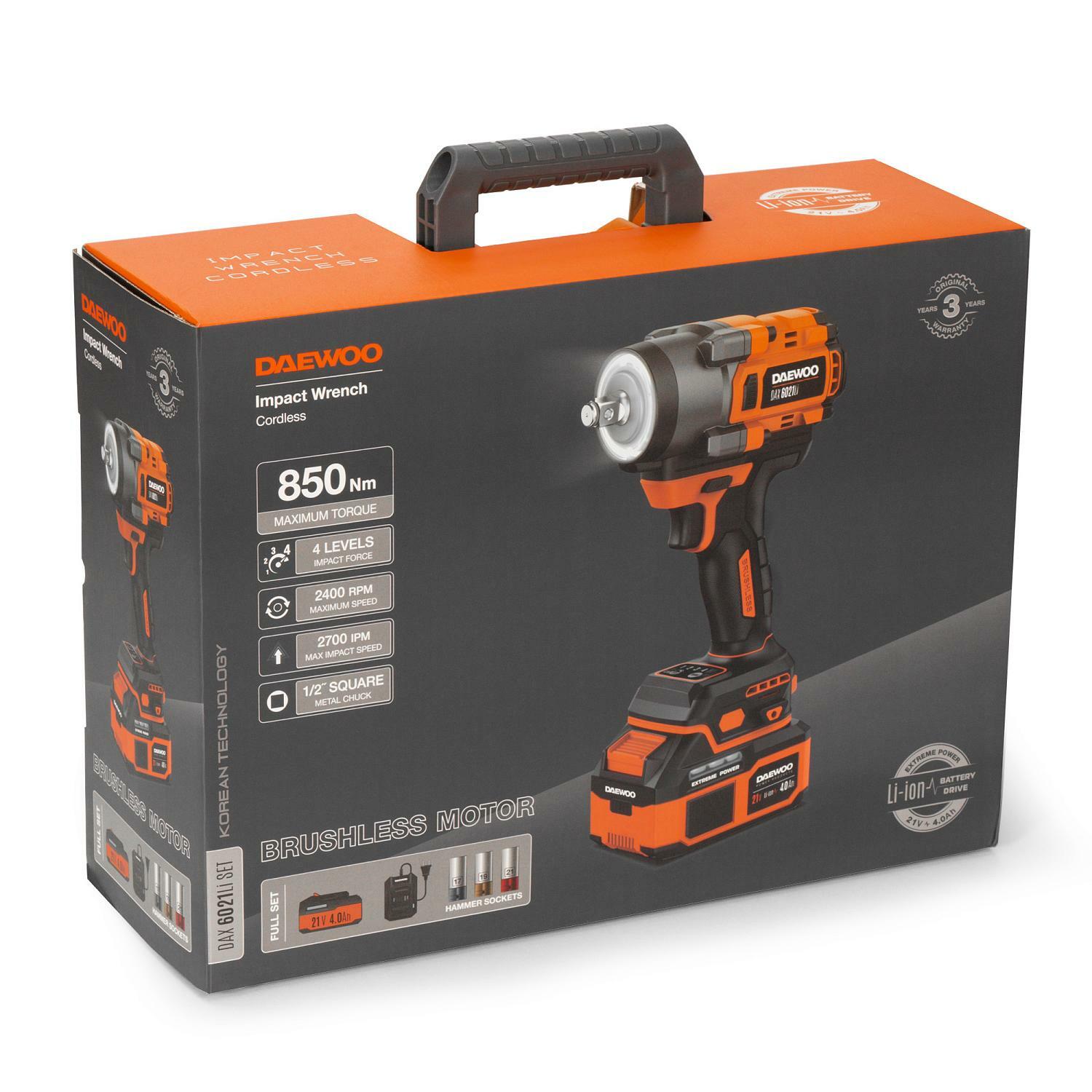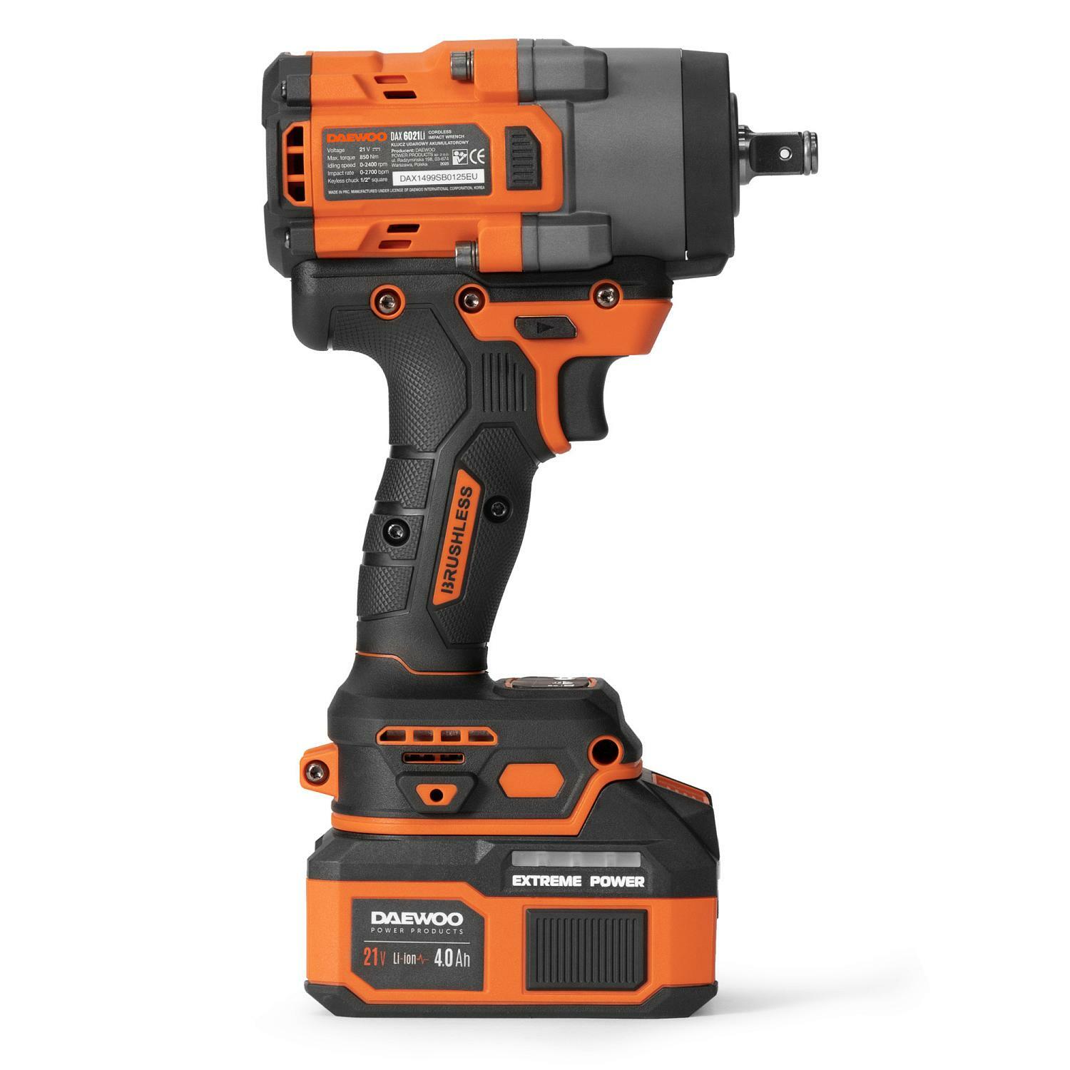 Инструмент совместим со всеми аккумуляторами DAEWOO 21V и инструментами из линии DAEWOO 21V. Бесщеточный двигатель