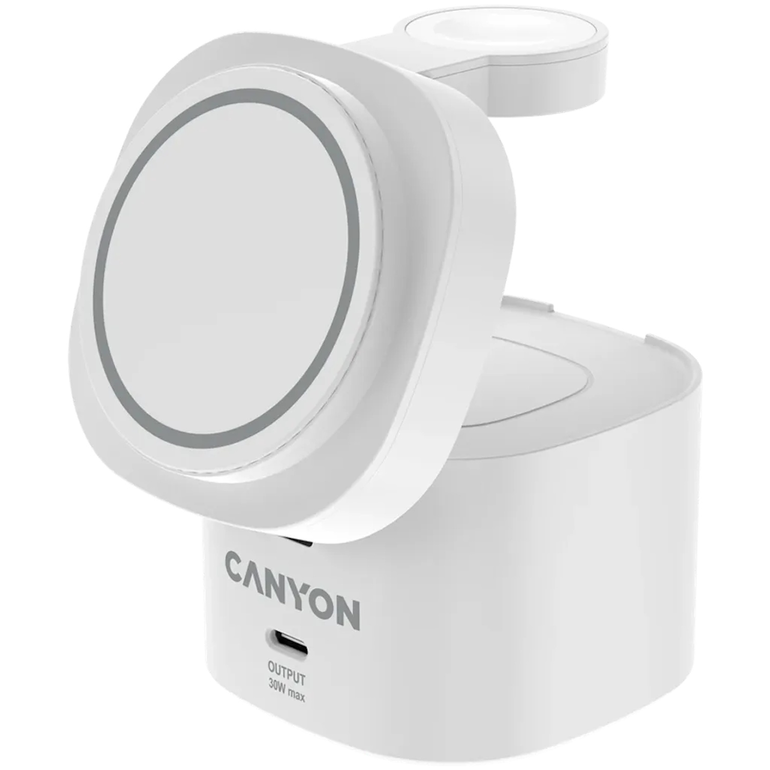 CANYON 4 in 1 Wireless Charging Stand — это компактная беспроводная зарядная станция мощностью до 30 Вт, оснащённая мощным зарядным устройством на 65 Вт и кабелем длиной 1 м. Она позволяет удобно и одновременно заряжать несколько устройств, сохраняя рабочее пространство чистым и организованным. Идеальное решение для современного дома или офиса.