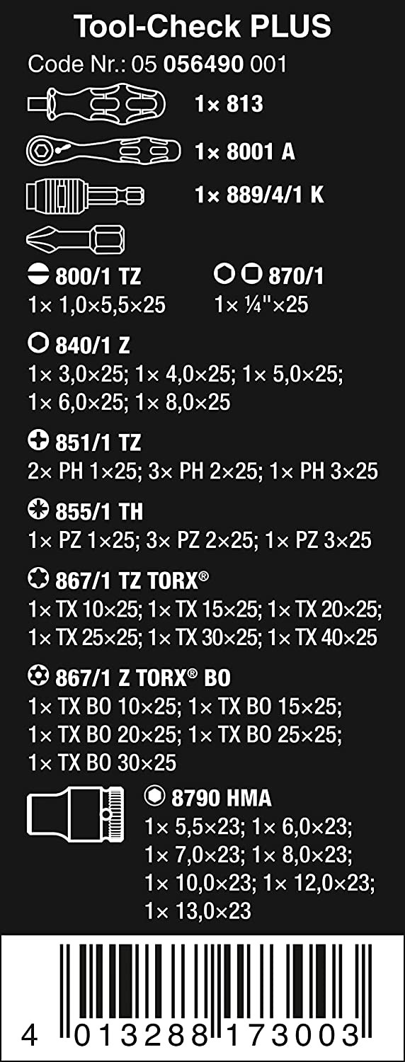 | Тип наконечника | TX25; PH2; TX20; TX30; TX15; TX40; PH3; TX10; PZ2; PH1; PZ1; PZ3; H4; H5; H6; H8; H10; H12; H13 |