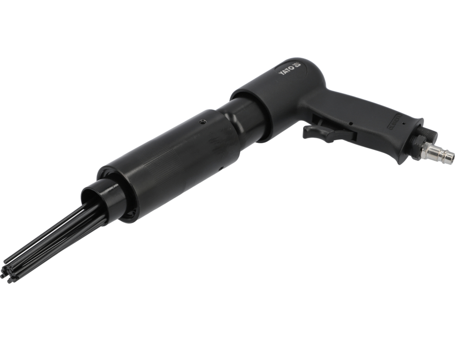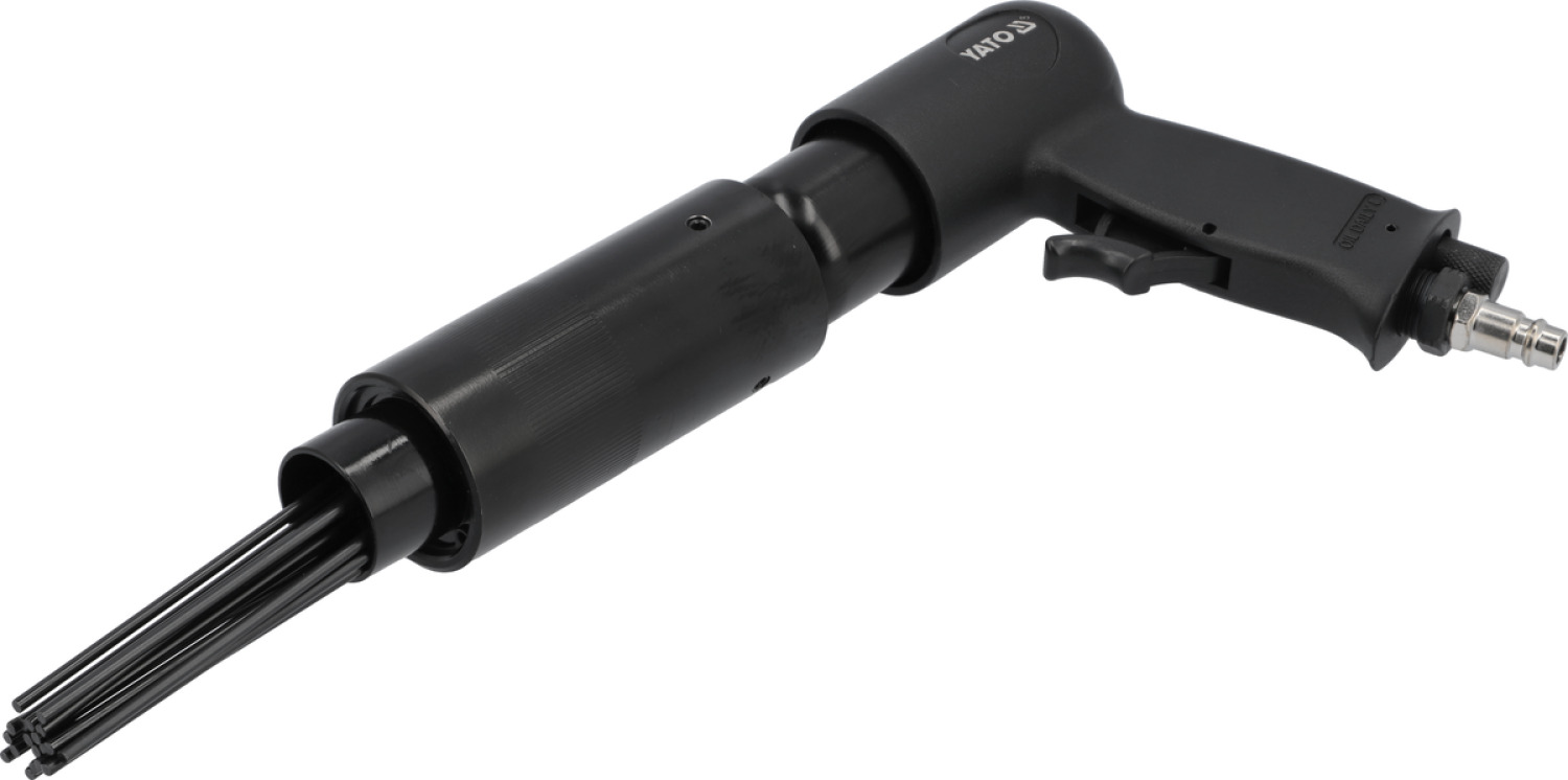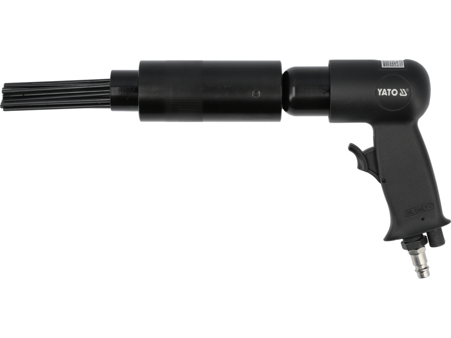 Пневматический игольчатый отбойник YATO YT-09910 работает на сжатом воздухе и предназначен для удаления налета, ржавчины, краски с деталей стальных конструкций в кузовных и малярных мастерских, автомобильных сервисах и производственных предприятиях, а также в условиях домашнего хозяйства.