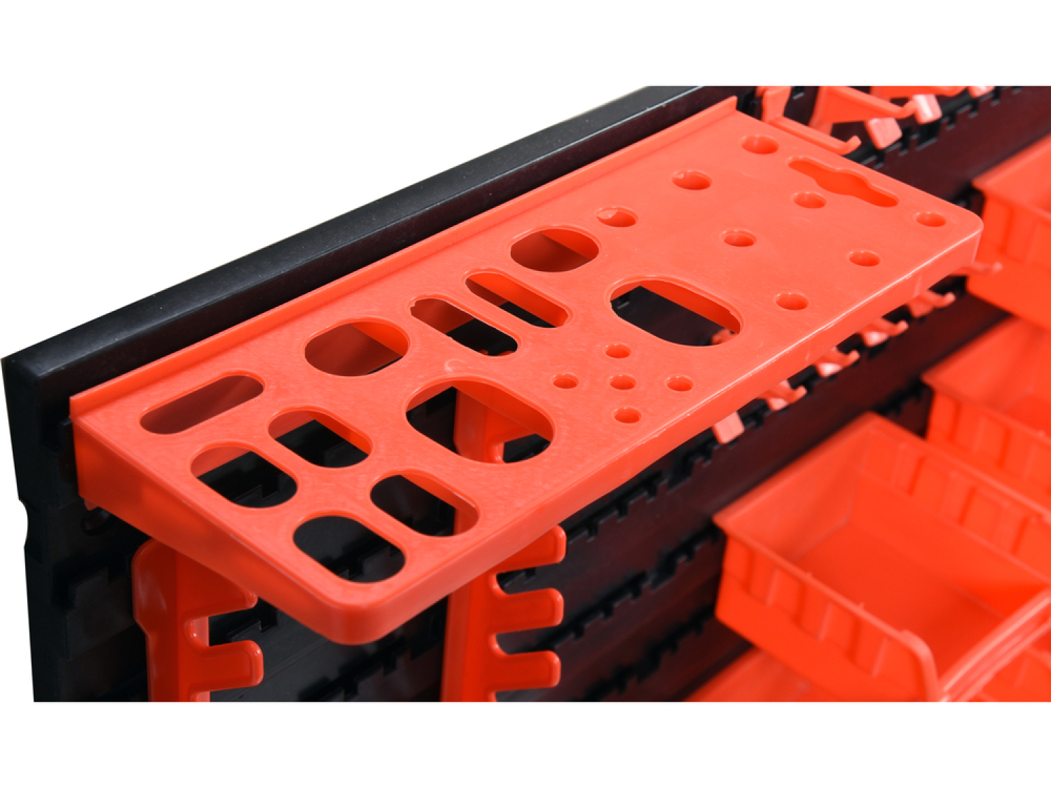 Система для удобного хранения инструментов и мелких аксессуаров в мастерской и гараже. Она помогает поддерживать порядок, а система контейнеров и крючков может быть легко настроена в соответствии с вашими потребностями.